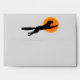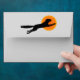 A Halloween A7 envelope with a magical black cat flying across an orange moon.