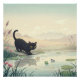 So we're looking to a serene world with this charming illustration of a curious black cat standing at a pond with cheerfully dodling frogs. The soft pastel colors, the detailed nature display, and the majestic mountain in the background create a sedative, dreamy atmosphere. Perfect for animal lovers and artist settings, this image embodies playfulness and quiet.