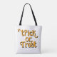 Tote bag for teens or adults during the Halloween season. White bag with black cat, jack o'lantern, flying witch and full moon design on the front. Large "trick or treat" wording on the back in orange can be removed or changed. The special characters in the wording will be removed. The design is perfect for any kid or teenager who likes to trick or treat. White shows up better at night too. Or use it to shop during the holiday season.