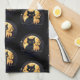 Black Cat Full Moon Celestial Black Halloween Tea Towel