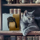 A cute black cat laying on a brown couch arm in backdrop of blue. The cat is a spicy cat filled with sass as they understand the human but they choose to ignore them.