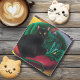 Black Cat Green Dragon Glass Coaster