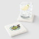 The coasters are gorgeous, a quality feel and heavy weight. They look like a precious archeological find. A rustic stone juxtaposed with a modern floral black and white print. I like the way the print goes slightly imperfect on the cut stone edges giving them a kind-of natural beauty.