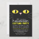 Cool Halloween costume party invitation with an illustration of a cat face, with big yellow eyes, a cute pink nose, and white whiskers.