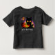 Your toddler will look super cute in this purple long sleeve tee with Halloween design and your text. This shirt features a black cat with copper eyes, pumpkins and a spooky moon in the background. A unique Halloween design that will delight a toddler girl.