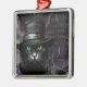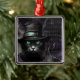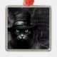 Black Cat Hat Argyle Alcohol Ink Metal Ornament