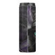 Black cat with green eyes and hat on gothic purple alcohol ink and argyle patterned background