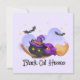 This playful Halloween greeting card features a black cat wearing a purple witch hat and cape, lounging sassily on a witch’s broomstick, paired with the fun and feisty phrase “Black Cat Hisses.” With a mix of spooky charm and attitude, this design is perfect for cat lovers, Halloween enthusiasts, and anyone with a mischievous streak.
