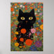 Black Cat In A Garden Poster,Funny Black Cat Art, Gustav Klimt, Cute Cat Art, Funny Gift, Funny Cat Prints, Home Decor, Living Room art,Klimt Canvas Print, Black cat lovers, Colourful Wall Art , Flower Garden Art,