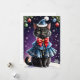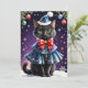 Black Cat in Christmas Blue Cape Flat Holiday Card