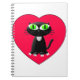 Black Cat In Red Heart Notebook