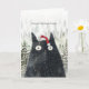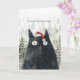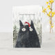 black cat in santa hat fun Holiday Christmas card