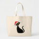 Black Cat in Santa Hat Large Tote Bag