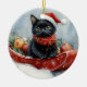 Black Cat in Sledge Let it Snow Christmas Ceramic Ornament