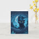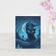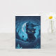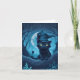 Blank greeting card with a cute black kitten wearing a dilapidated hat under a full moon.
