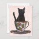 Black Cat in Teacup by FabFunky. Features a cat sitting in a beautiful floral teacup. | 191544D