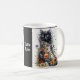 This charming coffee cup features a whimsical and artistic design with a black cat peeking out from the top of a black lace-up boot. The boot is adorned with a variety of colourful flowers and plants, including daisies, poppies, and other wildflowers, which appear to be growing out of and around the boot. The image creates a visually striking and imaginative scene, perfect for cat lovers and nature enthusiasts alike. The cup itself has a sleek, modern shape and is customisable, allowing you to personalise it with your favourite colours, fonts, and additional text or images. Whether you're enjoying your morning coffee or gifting it to a loved one, this unique coffee cup is sure to brighten anyone's day.