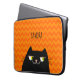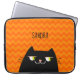 Funny, cute, modern, kawaii black cat laptop sleeve with monogram-name and orange chevron pattern. Perfect gift for any cat lover!
