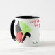 She'll be surprised when she gets this cute mug from "the Cat"! Two sides of the mug have an image of an adorable black kitten holding a big red heart. Between the images are three text fields to customise. They are shown as saying "Love You, Mum" and "The Cat", but you may personalise it or make it say anything you'd like. Hey, maybe it's a cat "Dad" who needs this! It will bring a smile, for sure!