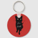 Personalised name keychain with a black kitty cat, pitch black image of a cute kitty feline cat. Gothic style with customisable background colour. For cat lovers.