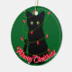 Black cat Meowy Christmas red twinkle lights Ceramic Ornament
