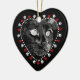 A beautiful black cat Merry Yule heart ornament. Ornament features a black cat illustration digital art in black and white, with red heart accents and white paw prints on the front. The back of this ornament has a paw print and two red hearts with dotted heart frame. The back reads Merry Yule, which you can change in the template field area on the page if you would like to add your own greeting. Also enter the current year for the bottom of the ornament. Makes a wonderful gift for family or friends or as a new addition to your holiday ornament collection! This design is available in our store on other shapes and styles of ornaments, greeting cards, stamps, cards and more! RED COLOR = Please be aware that due to the display image "compression" for web viewing, the red colours in this item, may 'appear' distorted via the web. However, this image will not print as you are viewing it. It will print clear and sharp with no smudging. Please visit our store for additional animal styles and gift products.