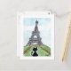 Black cat Noir Chat Looking at Eiffel Tower Art Postcard