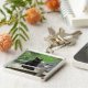 This beautiful keychain shows a black cat named Blackie. Blackie is sitting next to a lantern on a decorative wooden bridge with beautiful and lush green plants behind him. An irresistible keychain for every black cat lover.