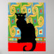 Black Cat on Abstract Wallpaper Poster