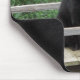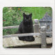 This mousepad shows a black cat sitting next to a lantern on a rustic wooden bridge surrounded by green plants and flowers. Blackie, the cat, goes out to this bridge each morning and watches the lizards and other critters playing below him.