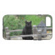 This phone case shows a black cat sitting next to a lantern on a rustic wooden bridge surrounded by green plants and flowers. Blackie, the cat, goes out to this bridge each morning and sits before beginning his day. Note: This phone case is available for many different phones. Please check to make sure the image fits well on your choice.