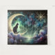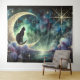Black Cat on Crescent Moon with Starry Night Sky Tapestry