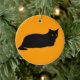 Black Cat on Orange Ceramic Tree Decoration