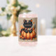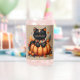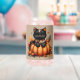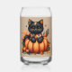 Black Cat on Pumpkin with Autumn Quilt Pattern Can Glass