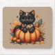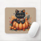 Black Cat on Pumpkin with Autumn Quilt Pattern Mouse Pad