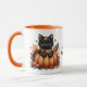 Black Cat on Pumpkin with Autumn Quilt Pattern Mug
