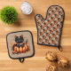 Black Cat on Pumpkin with Autumn Quilt Pattern Oven Mitt & Pot Holder Set