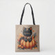 Black Cat on Pumpkin with Autumn Quilt Pattern Tote Bag