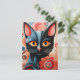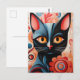 Black Cat Pink Flowers Postcard