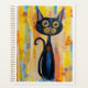 Original artwork of whimsical black cat on yellow collage background by Janna Doucette