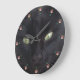 BLACK CAT PORTRAIT WITH EMERALD EYES,Pink Gemstone Large Clock