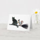 A black cat and witch squirrel ride a broomstick on this Halloween card.