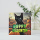 illustration of a witches black cat in a pumpkin field