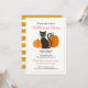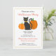 Invite friends and family to your Halloween party in style with these elegant yet whimsical Halloween Party invitations. This design features a black cat surrounded by two pumpkins. The back of the card features matching stripes in white, orange, yellow, and dark brown. Replace the text with your own.