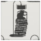 A cat and white space illustration of a cat reading plays by William Shakespeare. The cat is sitting on a large stack of books including Romeo and Juliet, Julius Caesar, Othello, Ling Lear, Tempest and the Merchant of Venice. The cat is sitting in the dart under a floor lamp.