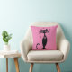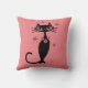 BLACK CAT RETRO THROW PINK PILLOW