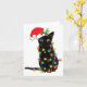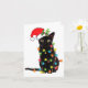 Black Cat Santa Tangled Up In Christmas Lights Card