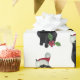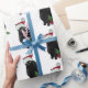 A black cat wearing a jaunty Santa hat holds a sprig of red and green holly on this fun holiday wrapping paper.
