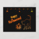 Black Cat Silhouette Neon Happy Halloween Postcard