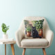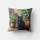 Black Cat Sitting by Ivy Plants Cat Lover Cushion